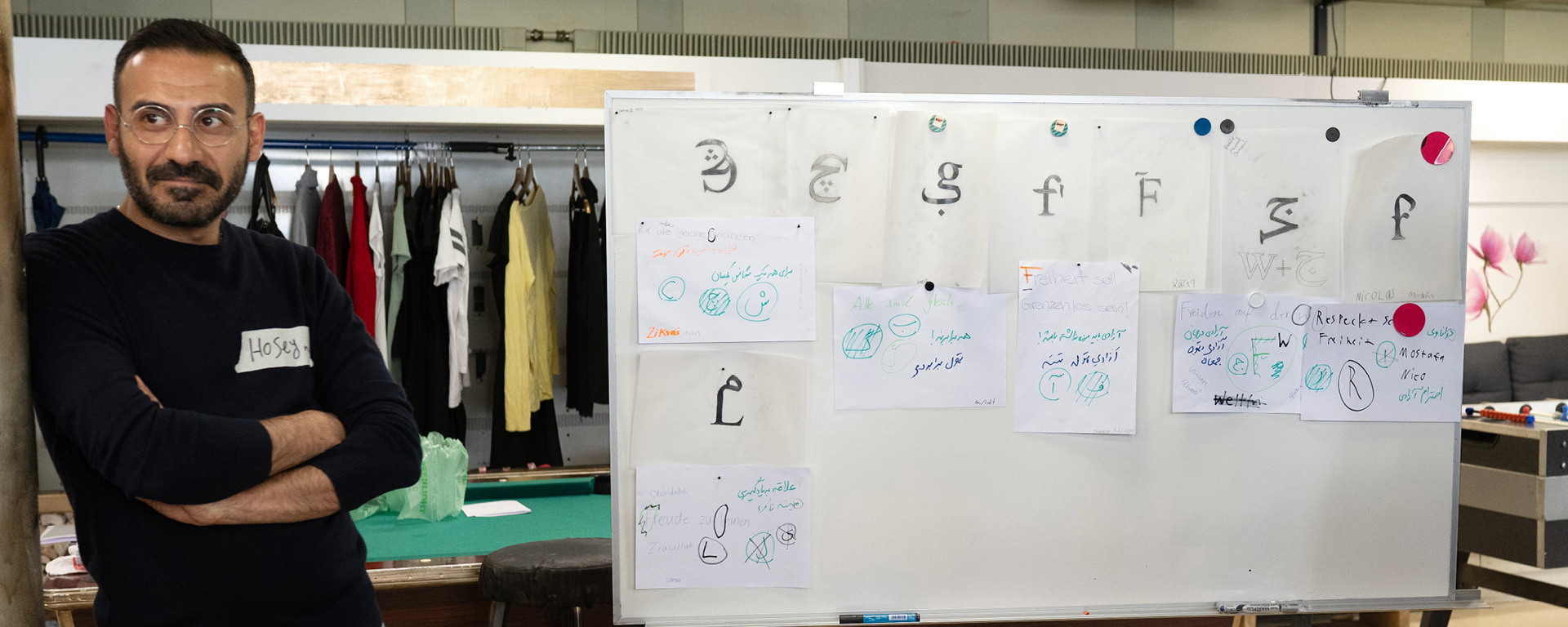 Im Tagesworkshop entwickeln Jugendliche in Tandem-Teams eine Botschaft in Form eines Schlüsselsatzes zu ihren Anliegen. Daraus wird ein zentraler Begriff hervorgehoben und aus dem Anfangsbuchstaben dieses Begriffes entsteht ein neues Schriftzeichen – ein Monogramm, bestehend aus 2 Schriften verschiedener Alphabete. Botschaft und Monogramm werden anschliessend als Plakat und Animation visualisiert.