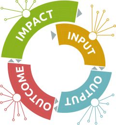 Die zentralen Aspekte in Bezug zur Dialoggruppe in der Wirkungslogik von Input – Output – Outcome – Impact.